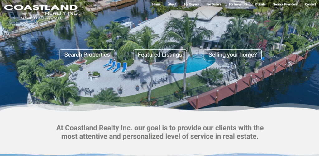 Real estate broker-agent. Beach and ocean theme. Integration with IDX, a market listings interface.