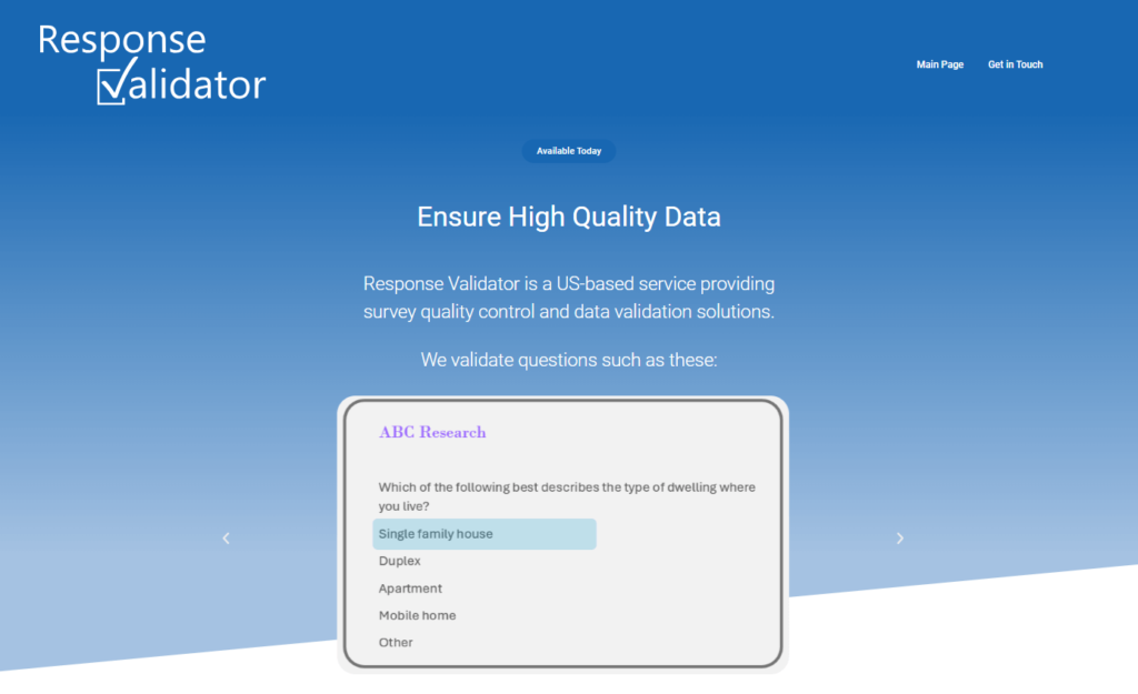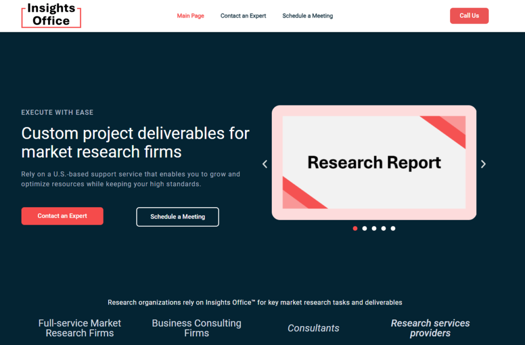 Market research service. Oriented toward a niche corporate audience. Product website approach.